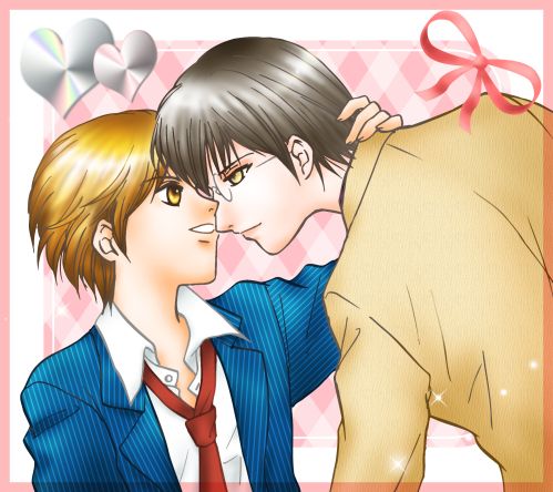 トップ用にバレンタインのラブラブイラストを描こうと思ったわけですが、完全にキスしている絵だと、総合トップには、ちょっとね…(^_^;